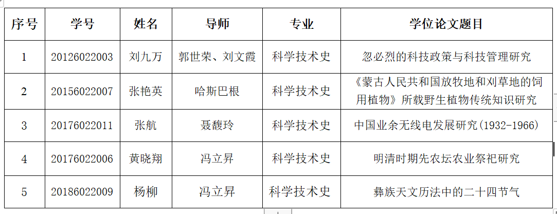 經(jīng)內(nèi)蒙古師范大學(xué)第十四屆學(xué)位評定委員會(huì)第九次會(huì)議審議通過,決定授予劉九萬等5人博士學(xué)位。